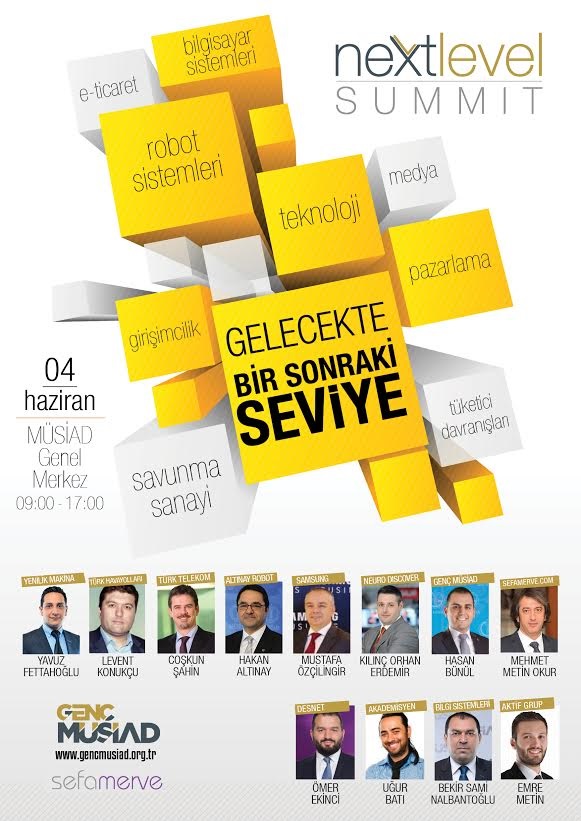 04 Haziran 2016 Cumartesi günü 09.00–17.30 saatleri arasında MÜSİAD Genel Merkezde teknoloji, reklam, pazarlama, 4. sanayi devrimi, gıda, Internet of things gibi konulara değinilen Next Level Summit adlı gelecek zirvesini gerçekleştirecektir.