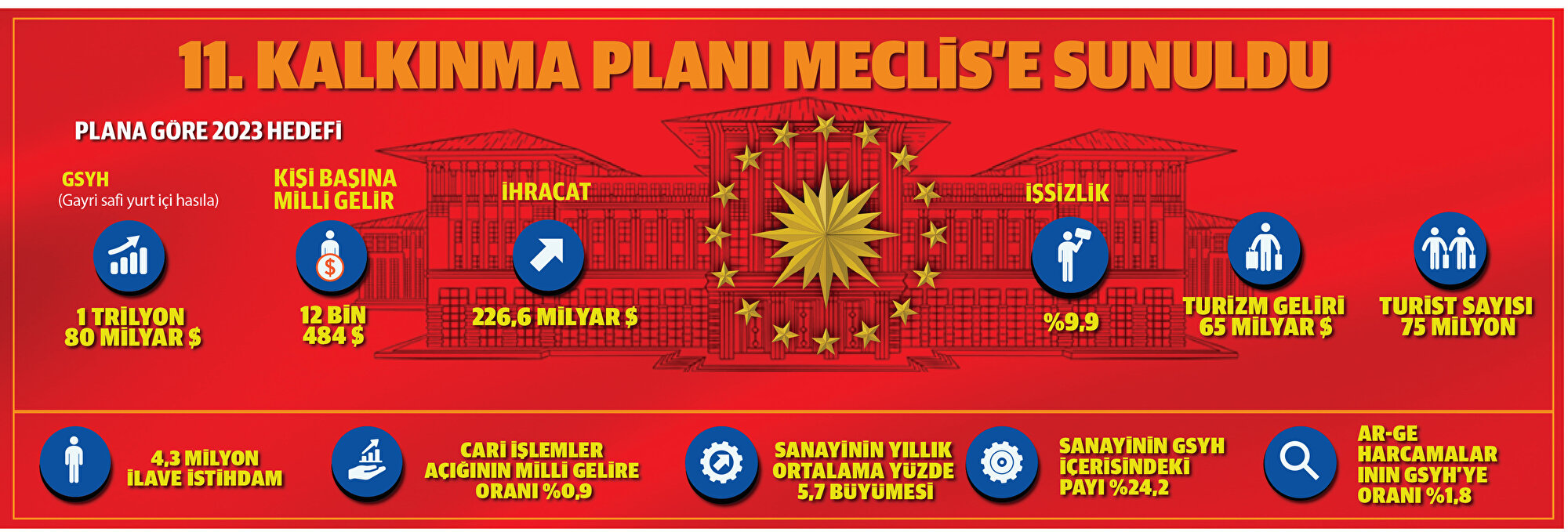 TBMM'ye sunulan ve 2019-2023 dönemini kapsayan On Birinci Kalkınma Planı'yla enflasyonun kademeli şekilde yüzde 5 hedefine inmesi öngörülürken, bu hedef doğrultusunda izlenecek tedbirler de belirlendi. Gıda enflasyonuyla mücadele kapsamında soğuk depo zincirleri kurulup, ürün taşıma araçlarının modernizasyonları desteklenecek. Yine gıdada fiyat takibi yapan sistem kurulacak. Finansal ve mali alanlara yönelik planlar arasında ise en dikkat çekenleri blok zincir tabanlı dijital merkez bankası parası hayata geçirilmesi ve Bireysel Emeklilik Sistemi (BES) katılımcılarına, kısa vadeli nakit ihtiyaçları için birikimlerinin bir kısmını sistemden çıkmadan çekme olanağı sağlanması oldu.