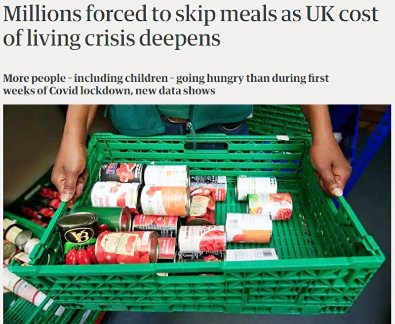 Milyonlarca yetişkinin ve çocuğun düzenli yemek yiyemediği belirtildi. Öğrencilerin, artan maliyetler yüzünden öğle yemeğini atlamak zorunda kaldığına dikkat çekildi.