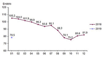 ekonomik güven endeksi 2018 Aralık ayında 81,9 iken, 2019 Ocak ayında yüzde 4,2 oranında azalarak 78,5 oldu.