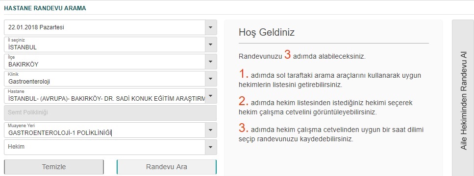 Saat ve poliklinikler farklı olmak kaydıyla aynı güne kurum başına en fazla iki randevu alınabilmektedir.