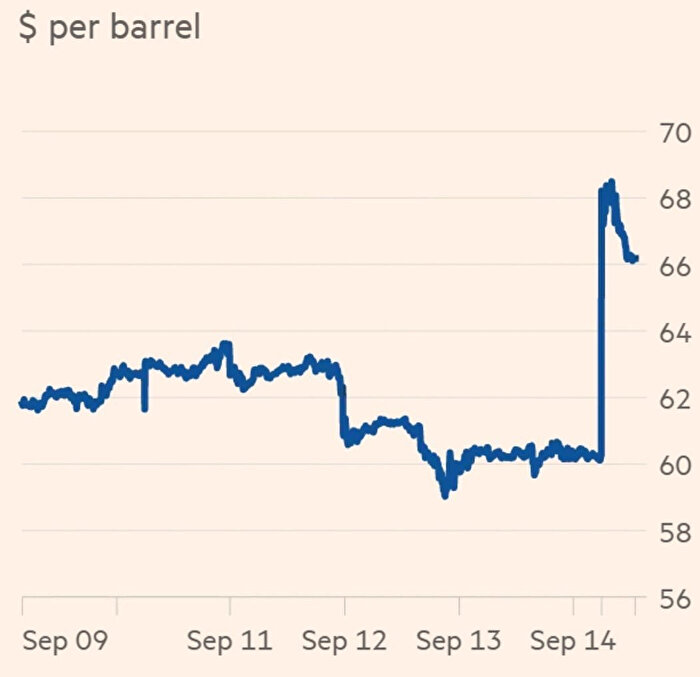 Suudi Arabistan'ın en büyük petrol tesislerine yönelik saldırıların ardından, ülkede petrol akışının durması petrol fiyatlarını vurdu. Borsanın açılmasıyla birlikte, Kuveyt’in 1990’da işgalinden bugüne petrol fiyatlarındaki en hızlı yükselişi yaşanıyor. Ham petrol fiyatı yüzde 19 artışla 63.34 dolar oldu.
