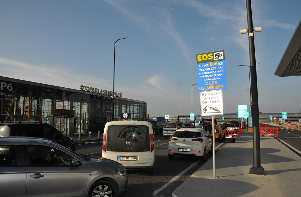 Havalimanı giriş ve çıkışlarını bekleyen yolcu yakınlarının oluşturduğu trafik yoğunluğunu engellemek amacıyla direklere ise Elektronik Denetim Sistemi (EDS) kameraları yerleştirildi. Karşılayacağı yolcusunun uçak iniş saatini havalimanı girişindeki emniyet şeridinde bekleyen araçlara Elektronik Denetim Sistemi (EDS) ile ceza geliyor. Trafik cezalarına ve uyarılara rağmen havalimanı girişlerindeki kuyruk uzamaya devam ediyor.