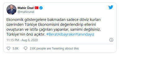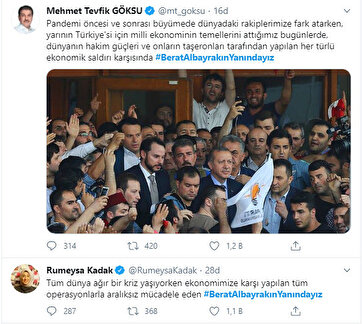 Ekonomide yaşanan son gelişmeler sonrası Hazine ve Maliye Bakanı Berat Albayrak'a yönelik başlatılan karalama kampanyalarına karşı sosyal medyadan birçok kullanıcı ve siyasi #BeratAlbayrakınYanındayız tagı ile binlerce destek mesajı paylaştı. Kısa sürede, #BeratAlbayrakınYanındayız etiketi Türkiye'nin gündemine oturdu.