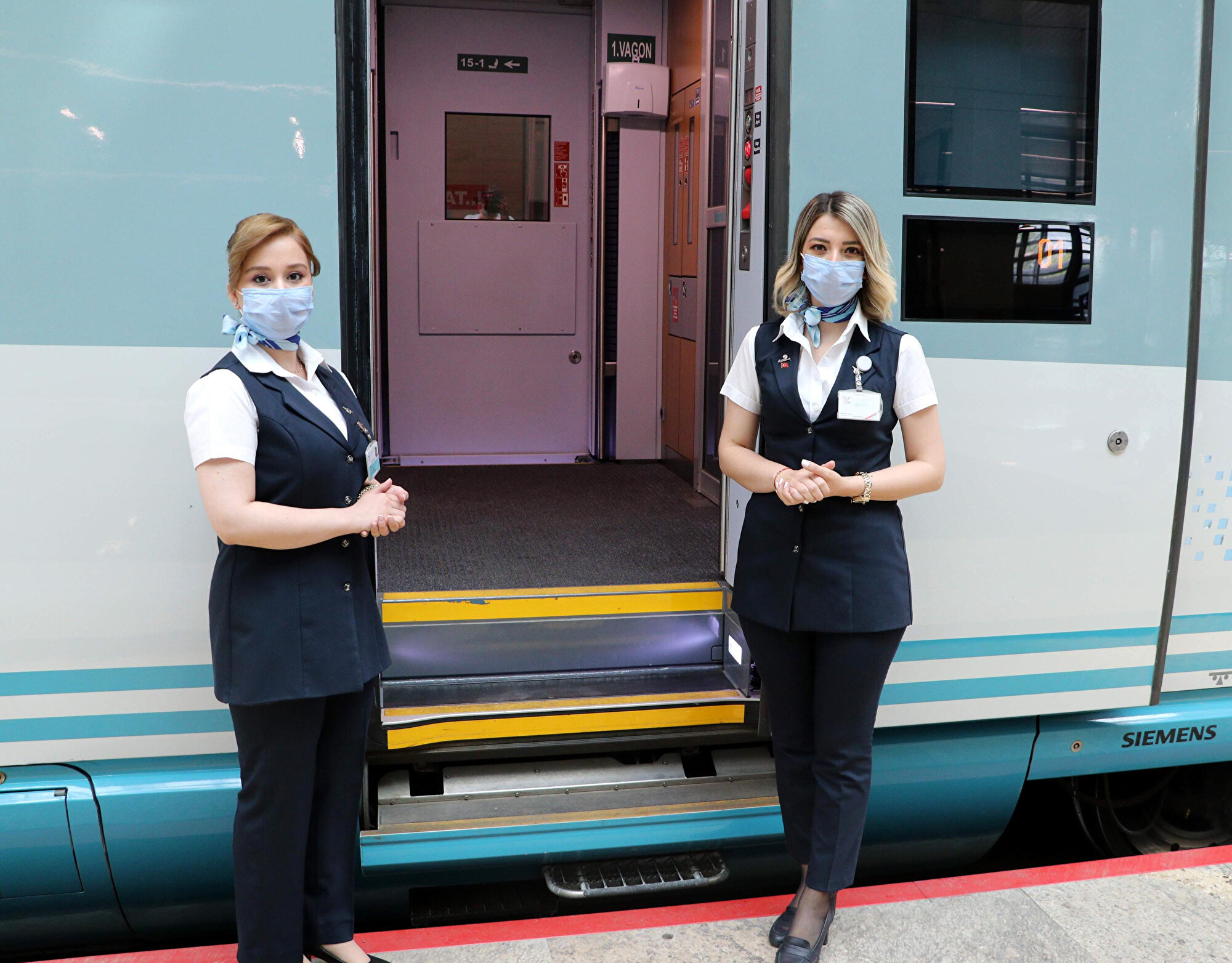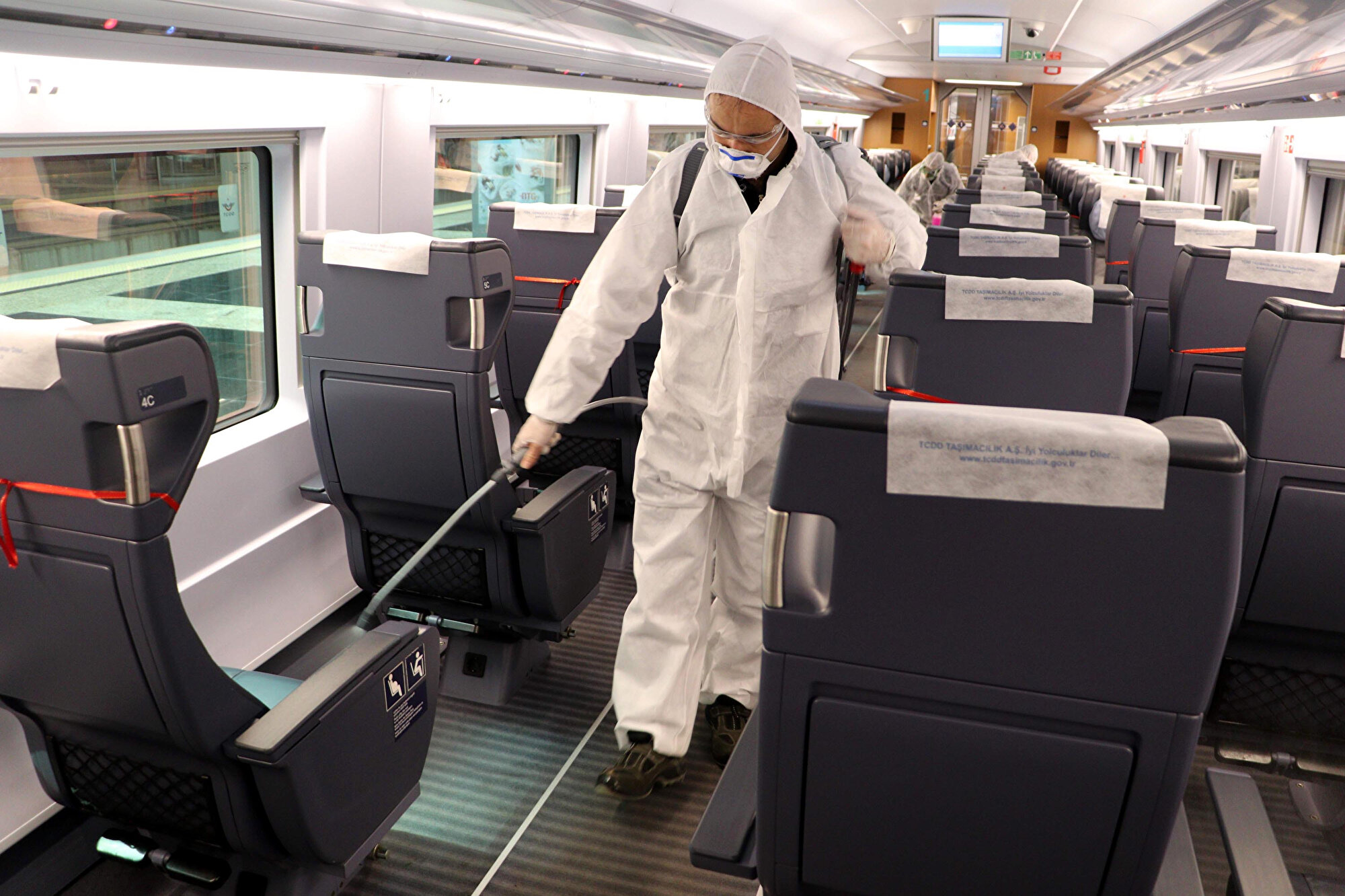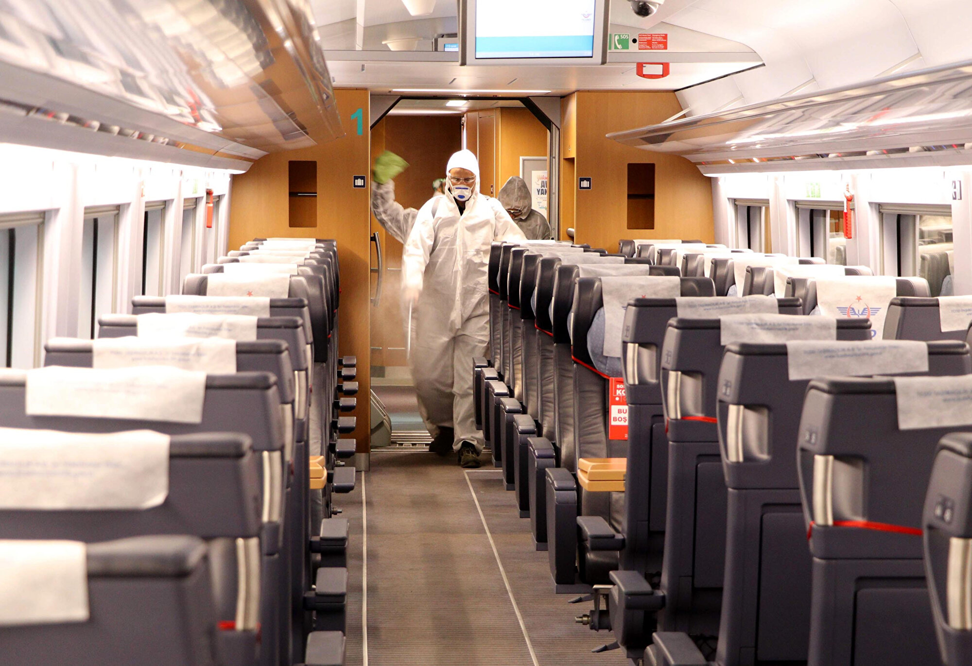 - Trenlerde Kovid-19 riskine karşı yemek ve büfe hizmeti verilmeyeceğini anlatan Karaismailoğlu, önlemlerin yanı sıra gar, istasyon ve trenlerde hizmet veren tüm personelin salgın riskine karşı uygun koşullarda hizmet vermesinin sağlanacağını, trenlerin her sefer öncesinde ayrıntılı temizliği ve hijyen işlemleri yapılacağını kaydetti.