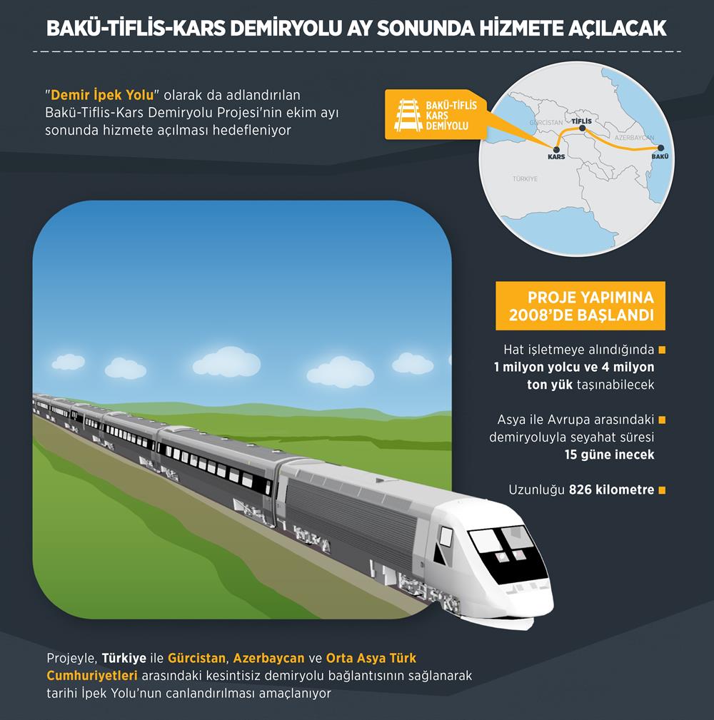 Bakan Ahmet Arslan, "Bakü-Tiflis-Kars projesi sadece Kars için değil, ülkemiz için önemli bir proje. Sebebi; Londra’dan kalkan bir trenin Pekin’e kadar kesintisiz gidebilmesinin önünde iki engel vardı. Biri boğaz yani Asya ile Avrupa’yı denizin altından demiryoluyla bağlamaktı. Onu yaptık biliyorsunuz. İkinci eksik halka Kars ile Gürcistan’ı, Ahılkelek arasında eksik olan kısım vardı. Ve bununla ilgili çalımlar bitti. Biz gerek Temmuz ayında, gerek Eylül ayının 27’sinde deneme seferleri yaptık. Eylül’ün 27’sinde Tiflis’ten trene binerek Kars’a kadar kesintisiz gelmiş olduk. Ahılkelek’te boji aktarma istasyonu olacak. Orada sadece tren değişikliğiyle geldik" dedi.