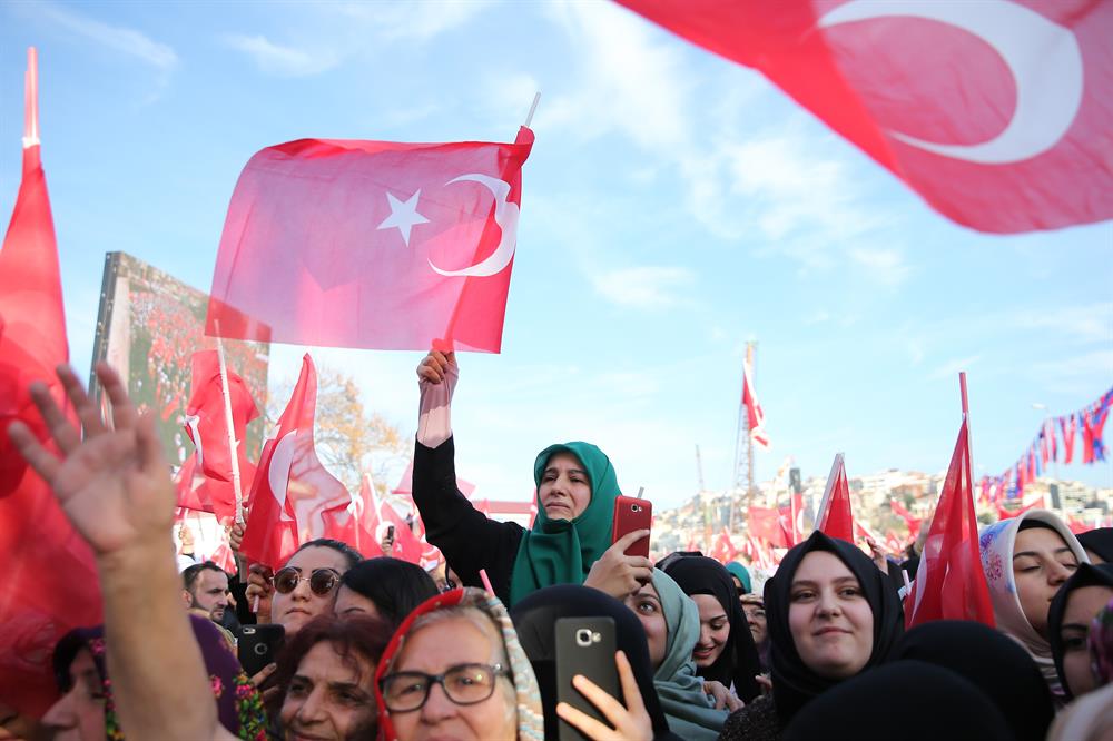 Meydanı sahte evrakları Amerika'ya taşıyanlara bırakmadık, meydanı çukur kazıp terör saçanlara bırakmadık, meydanı sokakları kaosa sürükleyenlere bırakmadık. Şimdi silahla, kumpasla başaramadıklarını ekonomiyle yapmaya çalışanlara bu meydanı bırakmıyoruz. Yüzde 11,1 büyüme ile 3. çeyrekte büyümede 1 numara olduk. Halen bunları görmezden gelenler var. Bu furyaya ana hıyanet partisi de katılmış durumda.