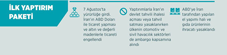 ABD Başkanı Donald Trump’ın seçimlerden önce ilan ettiği ‘İran yaptırım kararı’, seçimlerden sonra devreye girdi. 8 Mayıs'ta anlaşmadan çekilen Trump, kararın ardından, İran'a yönelik ilk yaptırım paketini 7 Ağustos’ta yürürlüğe koydu.