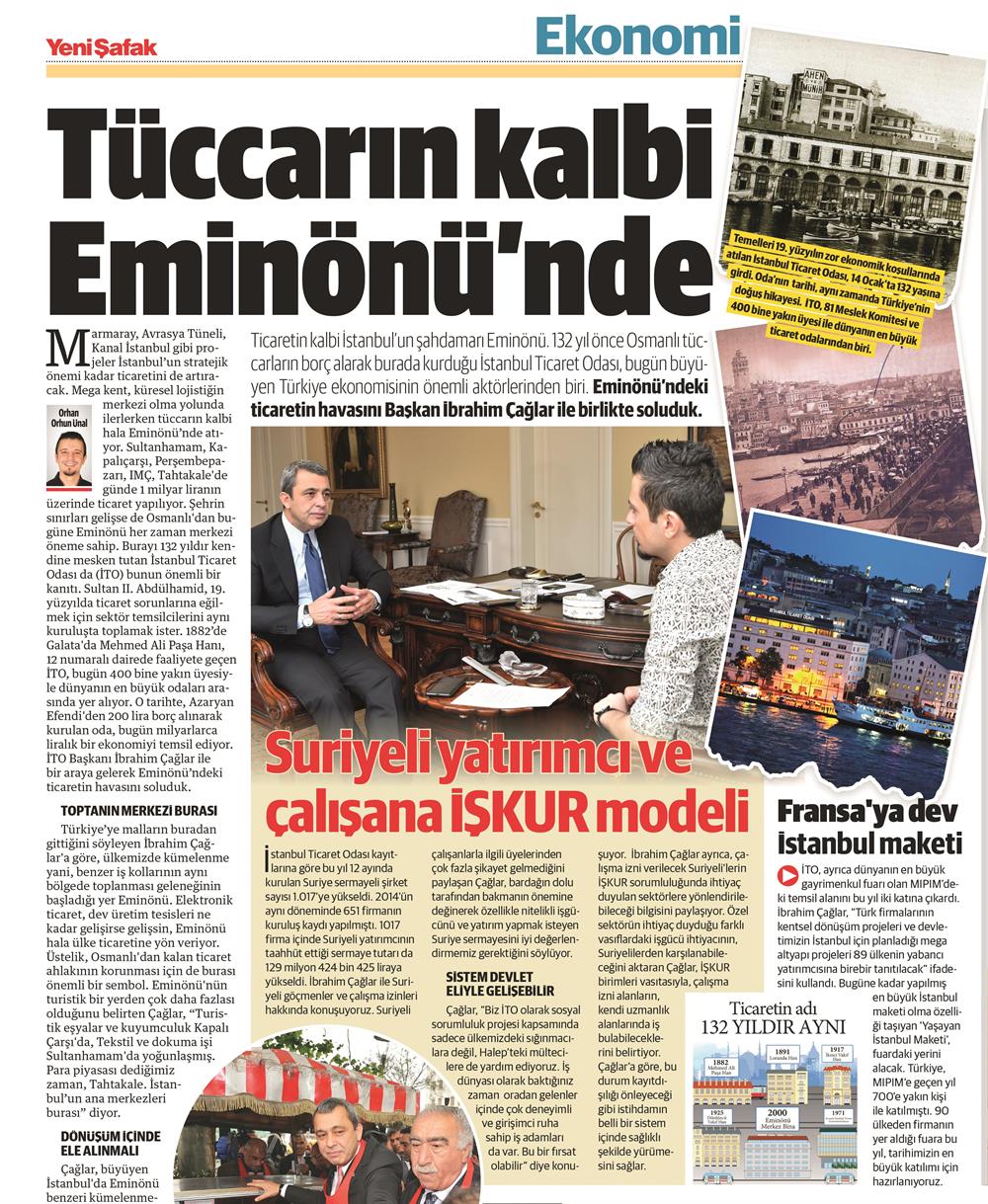 Geçtiğimiz aylarda Yeni Şafak’a verdiği röportajda ticaret hayatını ve Eminönü esnafının İstanbul için önemini anlatan Çağlar, “Ticaretin kalbi İstanbul’un şahdamarı Eminönü. 132 yıl önce Osmanlı tüccarların borç alarak burada kurduğu İTO, bugün büyüyen Türkiye ekonomisinin önemli aktörlerinden biri” yorumunu yapmıştı. 7 yaşında yaz tatilini eniştesinin Sultanhamam’daki dükkanında çalışarak geçiren İbrahim Çağlar, o dönemi şöyle anlatmıştı: “Öylesine canlı bir atmosferi vardı ki, yaz tatillerinin gelmesini iple çekerdim” Çağlar, anılarındaki Sultanhamam için, “Bir tüccar için en keyifli şey bereketli çarşıda ticaret yapmak. Çocukken dükkandan bir top kumaşı alıp, alt sokağa indirmek yarım saatimi alırdı. Sıra bekleyen müşteriler olurdu” bilgisini vermişti.