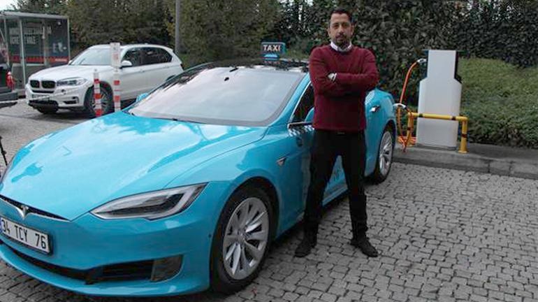 İTEO ile İstanbul Büyükşehir Belediyesince yürütülen proje kapsamında hizmet veren turkuaz renkli çevreci Tesla taksiler vatandaşlardan ilgi gördü.