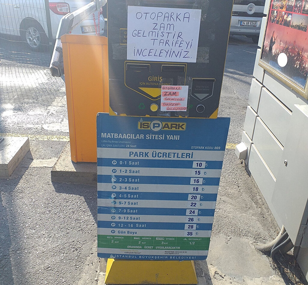 İstanbulluların tepkisiyle karşılaşan İSPARK personeli, duyurusu yapılmadan yürürlüğe konulan zamlı tarifeye kendi imkanlarıyla dikkat çekiyor. Pek çok otoparkın girişine, çalışanlar tarafından “Otoparka zam gelmiştir. Tarifeyi inceleyiniz” yazılı kağıtlar yapıştırıldı.