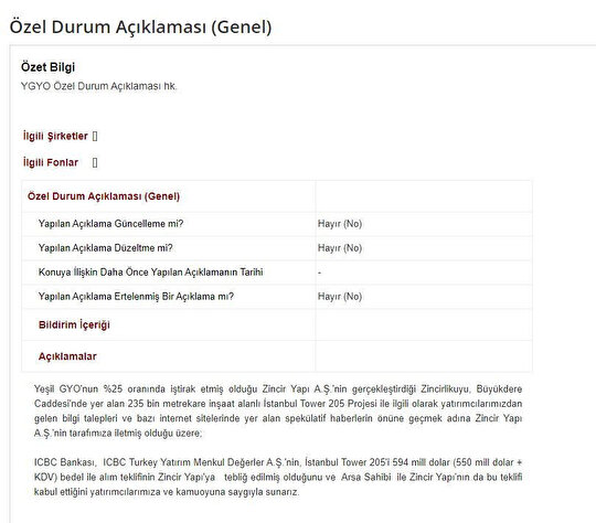 Çin'in en büyük bankalarından Çin Endüstri ve Ticaret Bankası'na (ICBC) bağlı ICBC Turkey Yatırım Menkul Değerler A.Ş. İstanbul Tower 205 için 594 milyon dolar teklifte bulundu.
