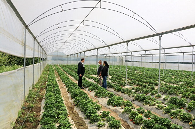 Tarım ve Orman Bakanlığının verdiği hibe desteğiyle kurduğu çilek serasında günde 60 kilo çilek hasadına başlayan Arzu Özçay, serasını daha da büyütmek istiyor.