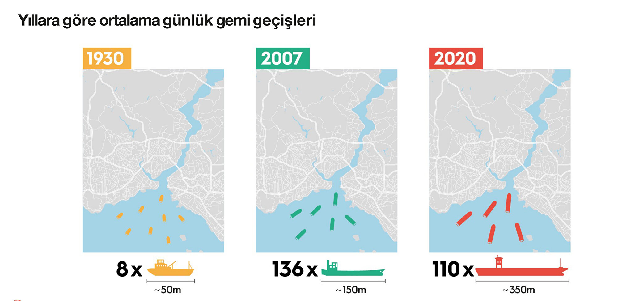 İstanbul Boǧazı’nın günümüzde yaklaşık 50.000 mertebelerinde olan trafik yükünün, dünya ve bölge ülkelerindeki gelişmeler dikkate alındıǧında 2070'li yıllarda 86.000 mertebelerine ulaşacaǧı tahmin ediliyor.