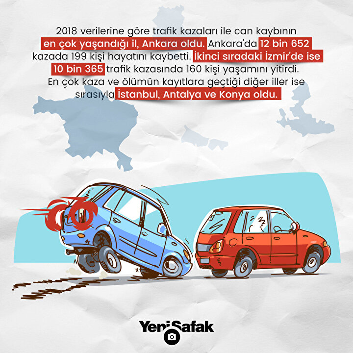 Emniyet verilerine göre Türkiye genelinde 2018 yılı içerisinde 428 bin trafik kazası meydana geldi. Söz konusu kazalarda 3 bin 373 kişi hayatını kaybederken, 310 bin kişi ise yaralandı.