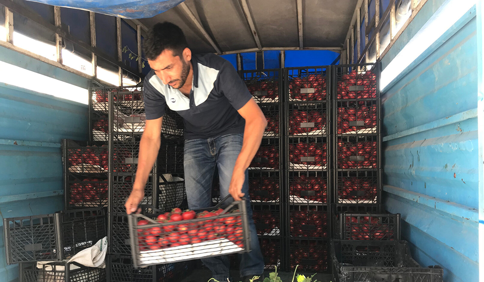 Mersin'den Mardin'in Derik ilçesine kamyonetle domates getiren Mehmet Nuri Sakin, kilosunu 1 liraya satışa sundu. Sakin'in 15 kiloluk kasaları 15 liradan satışa sunduğu domatesler, kısa sürede tükendi.