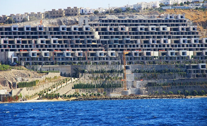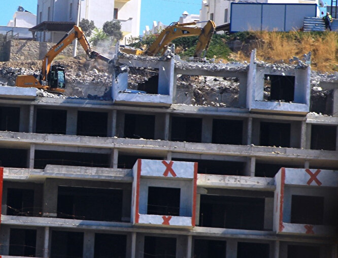 11’i otel 19 projede, toplamda 2 bin 100 villa, rezidans, lüks dairelerin yıkımı için yüzlerce iş makinesi çalışmaya başladı. Yıkılacak olan bazı evlerin ve otellerin imara aykırı bölümleri büyük kırmızı çarpı ile işaretlenmesi dikkat çekti.