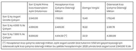 Kısa çalışma ödeneği; sigortalının son 12 aylık prime esas kazançları dikkate alınarak hesaplanırken ödenen günlük ücret, günlük ortalama brüt kazancının yüzde 60’ı şeklinde gerçekleşiyor. Kısa çalışma ödeneği miktarı, aylık asgari ücretin brüt tutarının yüzde 150’sini geçemiyor.