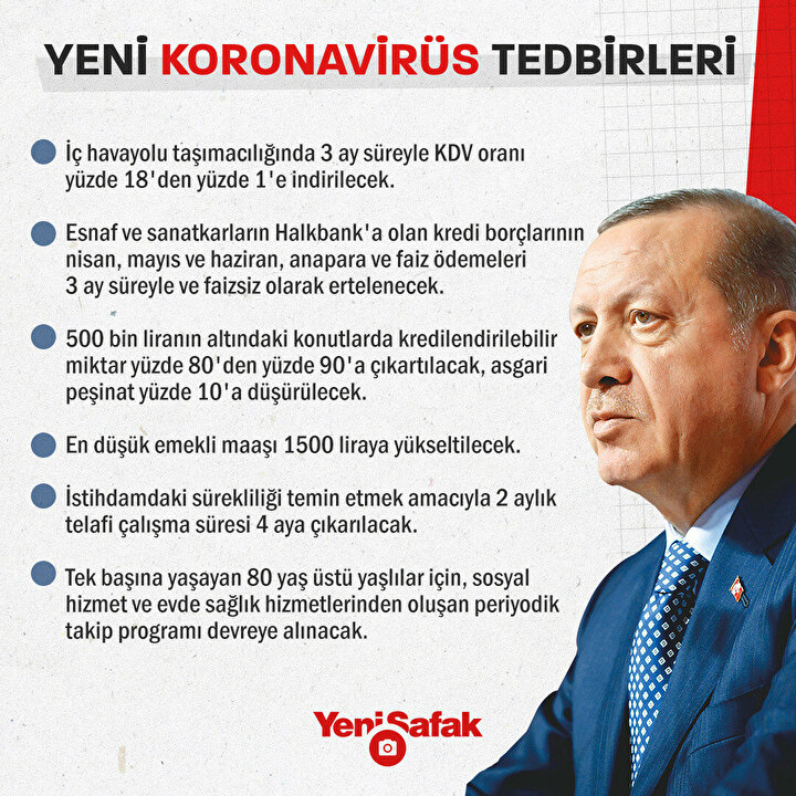 21 maddelik ekonomik tedbir paketinde işverenden işçiye emekliden ihtiyaç sahiplerine pek çok farklı kesim için süresi 6 aya kadar çıkan teşvik, destek, muafiyet, indirim ve borç erteleme gibi avantajlar sunulacak.