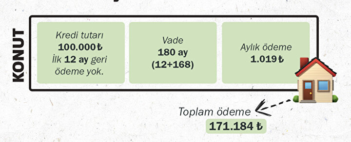 Konut desteği kapsamında sıfır ve 1. el konutlar için azami 12 ay ödemesiz dönemli, 15 yıl vade ve aylık yüzde 0,64 faizle finansman sunulacak. İkinci el konutlar için azami 12 ay ödemesiz dönemli, azami 15 yıl vade ve aylık yüzde 0,74 faiz oranı ile finansman imkanı sunulacak.