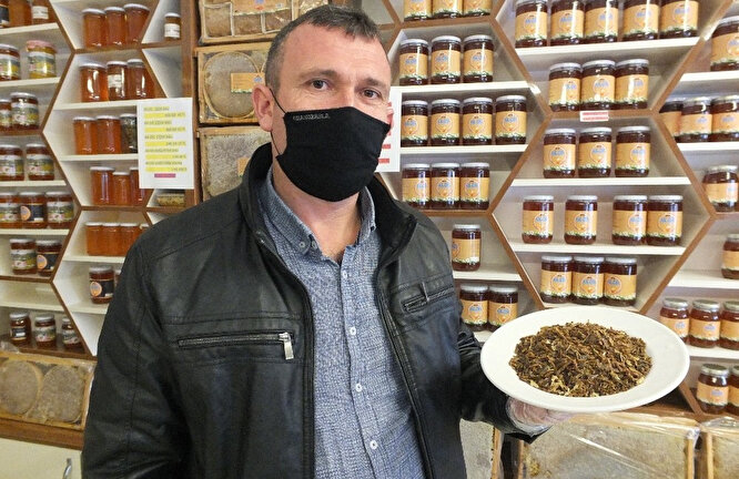 Koronavirüs pandemisi ve kış mevsimi sebebiyle muhtemel hastalıklardan ve koronavirüsten korunmak isteyen vatandaşlar çareyi propoliste buldu. 18 yıldır arıcılıkla uğraşan Akın Beyhanlı, ağaçların kendi gövdelerini soğuktan ve bakterilerden koruması için salgıladığı reçineye benzer bir madde olan propolisi arıların ağaçlardan topladığını ve kovanların içine bakterilerin girmemesi için buldukları çatlak ve delikleri bu topladıkları madde ile kapattıklarını belirtti.