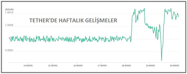 Kripto para piyasalarının üçüncü sırasına yükselen Tether 0.9986 ve 1.00 dolar arasında dalgalandığı son 24 saatte yüzde 0.09 artışla 1.00 dolara yükseldi. Birimin haftalık kazancı yüzde 0.13 ve piyasa hacmi de 58 milyar dolar düzeyindeydi.