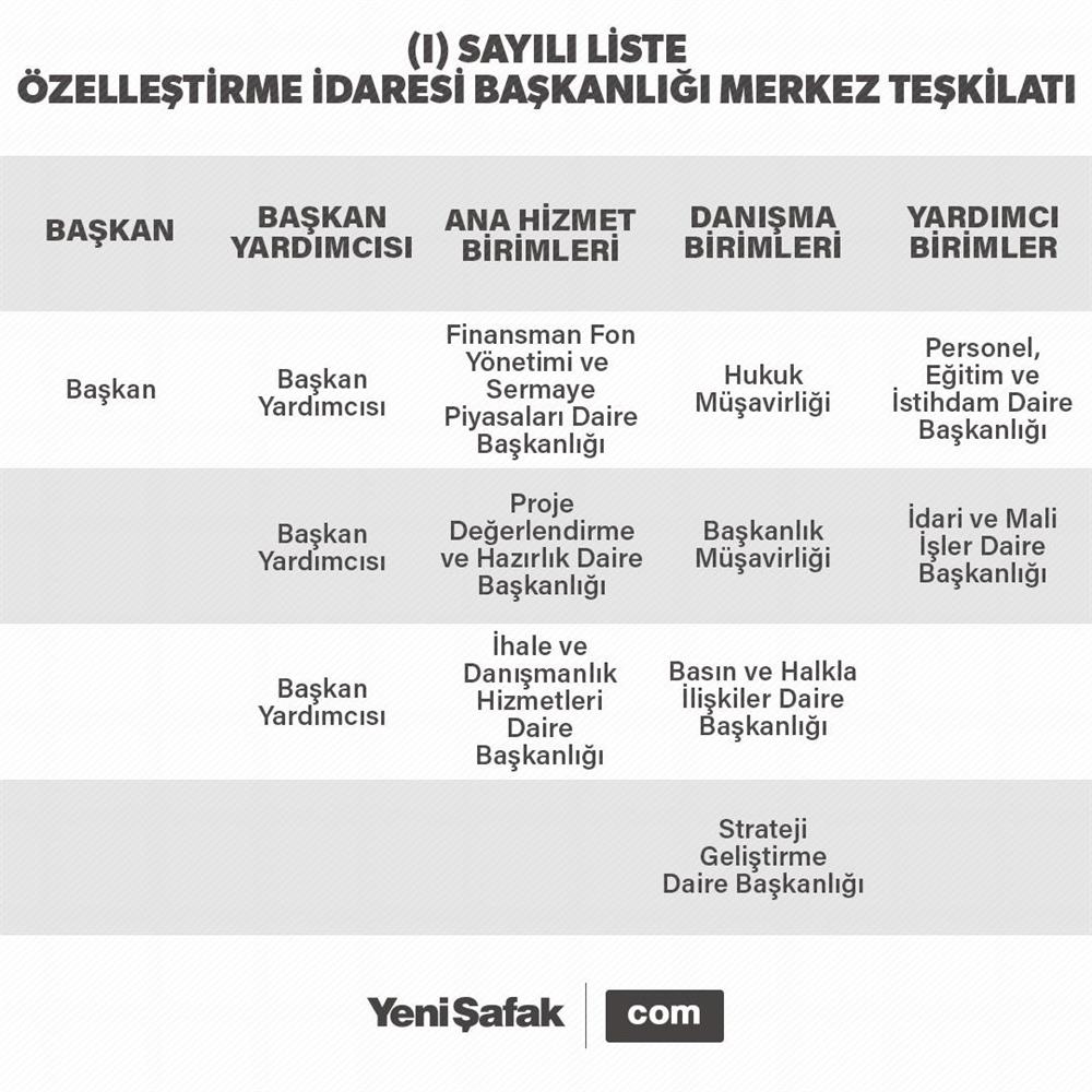 Kamu idarelerindeki etkinliğin ve verimin arttırılması için harekete geçen ekonomi yönetimi ilk adımı Özelleştirme İdaresi Başkanlığı'nda attı. Yapılan düzenleme ile çok sayıdaki daire başkanlıkları birleştirilerek yeniden adlandırıldı. İdare bünyesindeki 1. derecedeki 8 kadro ise iptal edilerek 3'e indirildi.
