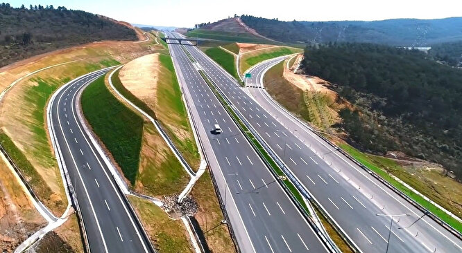 İki kıt’ayı birbirine bağlayacak ve ulaşımda büyük bir rahatlamayı sağlayacak olan Kuzey Marmara Otoyolu, dünyada eşi görülmeyen yapıları ile adından söz ettirecek. Projede Dilovası Liman Kavşaığı-İzmit kısmında inşa edilen 4 şeritli tüneller ise dünyanın en geniş tünelleri olma özelliğini taşıyor. 52 kilometre uzunluğuna sahip olacak olan Kuzey Marmara Otoyolu’nun Liman Bağlantı Yolu-İzmit arasında yer alan projenin 5. kısmında 5 adet tünel, 6 viyadük, 2 köprü yer alıyor. Liman Bağlantı Yolu’ndan başlayan yol Körfez ilçesinin Sevindikli Mahallesi’nden geçerek, İzmit Doğu Kavşağı mevki’inde TEM otoyoluna bağlanacak. Yaklaşık 135 metre yüksekliğindeki viyadüklere sahip olan Kuzey Marmara Otoyolu’ndaki çalışmalar havadan görüntülendi. Görüntülerde tamamlanan ve trafiğe açılan yollarda çevre düzenleme çalışmalarının da bittiği görünüyor.