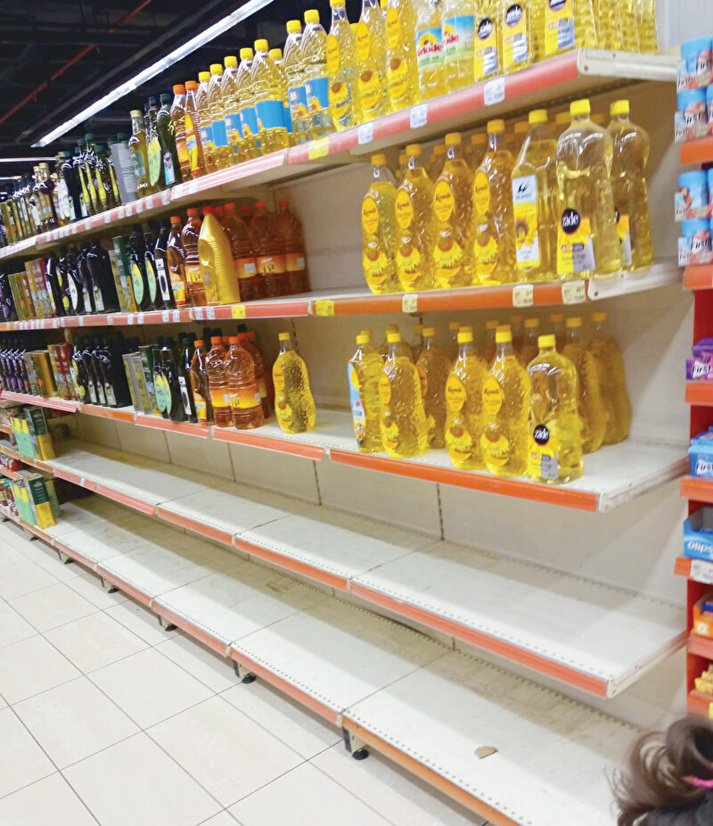 Başka bir markette ise 1 litrelik yağlar reyonda dururken 5 litreliğin yerinin boş olduğunu gördük. Nedenini sorduğumuz market müdürü şunları söyledi: