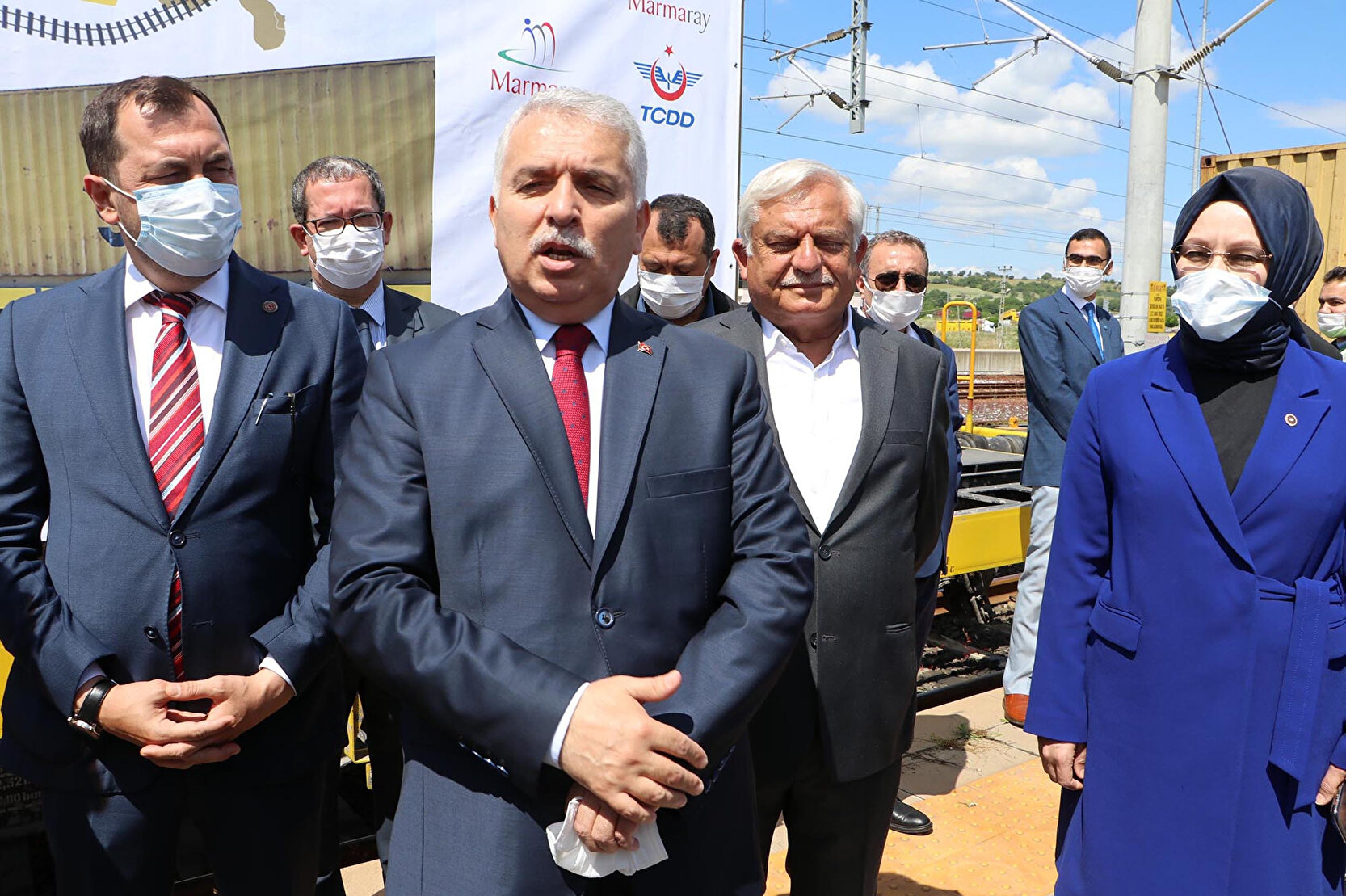 Yük trenini karşılama töreninde konuşan Tekirdağ Valisi Aziz Yıldırım, "Burada ilk defa bir tren katarı görüyoruz. Bunun ilk defa olmasının özelliği de ilk defa konteynerlerle yük taşınıyor. Buradaki konteynerler, gemilere yüklenmek suretiyle dünyanın dört bir tarafına ulaştırılabilecek.