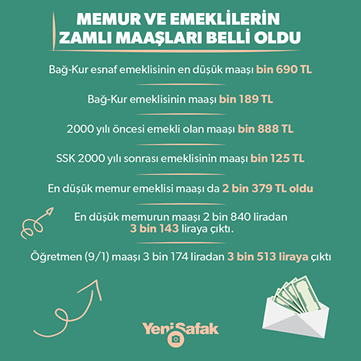 - Bağ-Kur emeklisinin maaşı ise bin 189 TL