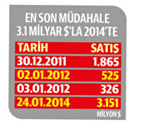 Kur ataklarını önlemek için Merkez Bankası, 7 yıl aradan sonra döviz satışı yönünde piyasalara doğrudan müdahalede bulundu. TCMB, müdahalenin “Piyasadaki sağlıksız fiyat oluşumlarından” kaynaklandığını duyururken, Borsa İstanbul Vadeli İşlemler Piyasası’nda da döviz kontratlarında işleme başladı.