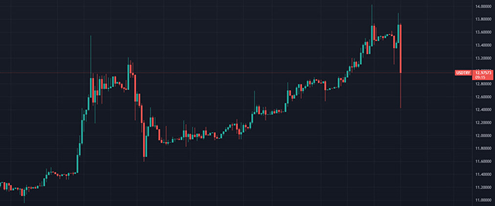 - Bu açıklamanın ardından gün içinde 13,90 TL'ye çıkan dolar 12,43'e düştü.