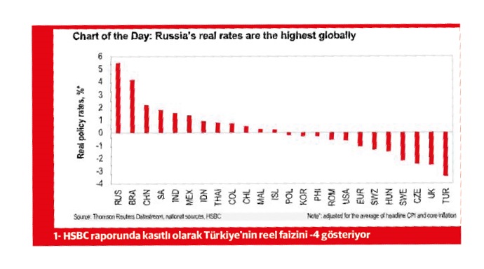 Merkez Bankası’nın (TCMB) döviz kurundaki yükselişi kontrol için yarınki toplantıda faizleri artıracağı yönünde yurt içi ve yurt dışı piyasalar üzerinde oluşturulan algının altında Londra merkezli HSBC ve bazı spekülatörlerin olduğu belirlendi. Yurt içindeki bazı akademisyenlerin iyi niyetli açıklamaları manipüle ederek, Londra’nın arka sokaklarında TCMB’nin faiz artışı konusunda ‘izin aldığı’ dedikodusunun yaymaya çalışıldığı anlaşıldı. Türkiye’nin reel faizinin artı yüzde 3,58-3,60’larda olmasına karşın HSBC’nin sosyal medya hesaplarında Türkiye’deki reel faiz oranını eksi 4’lerde göstererek algı oluşturmaya çalışması dikkat çekti. Bu dedikoduların Londra merkezli olmasını kaynak gösterip ‘bilgiler doğru’ söylentisini yayan Türkiye merkezli bazı odakların, yatırımcıları döviz pozisyona çekmeye çalıştığı dile getiriliyor.