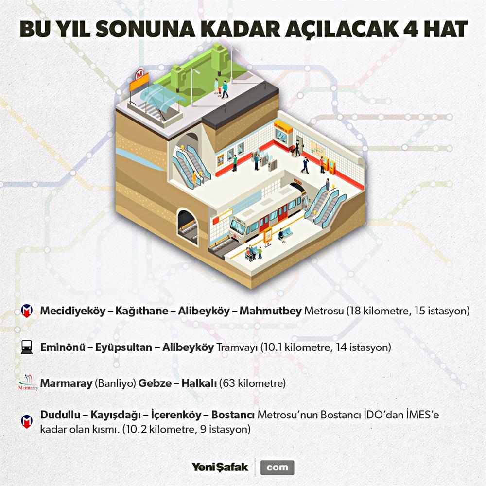 İnşaat halindeki hatlar ile metroda 430 km uzunluğa yaklaşarak Londra ve Newyork’u geride bırakan İstanbul’da metro yapımında yeni bir uygulamaya geçiliyor. İstanbul trafiğini ciddi anlamda rahatlatacak 'her yere metro' projesi için gerekli olan 600 km’lik hat şehir hastanelerinde uygulanan yap-kirala-devret formülü ile yapılacak.