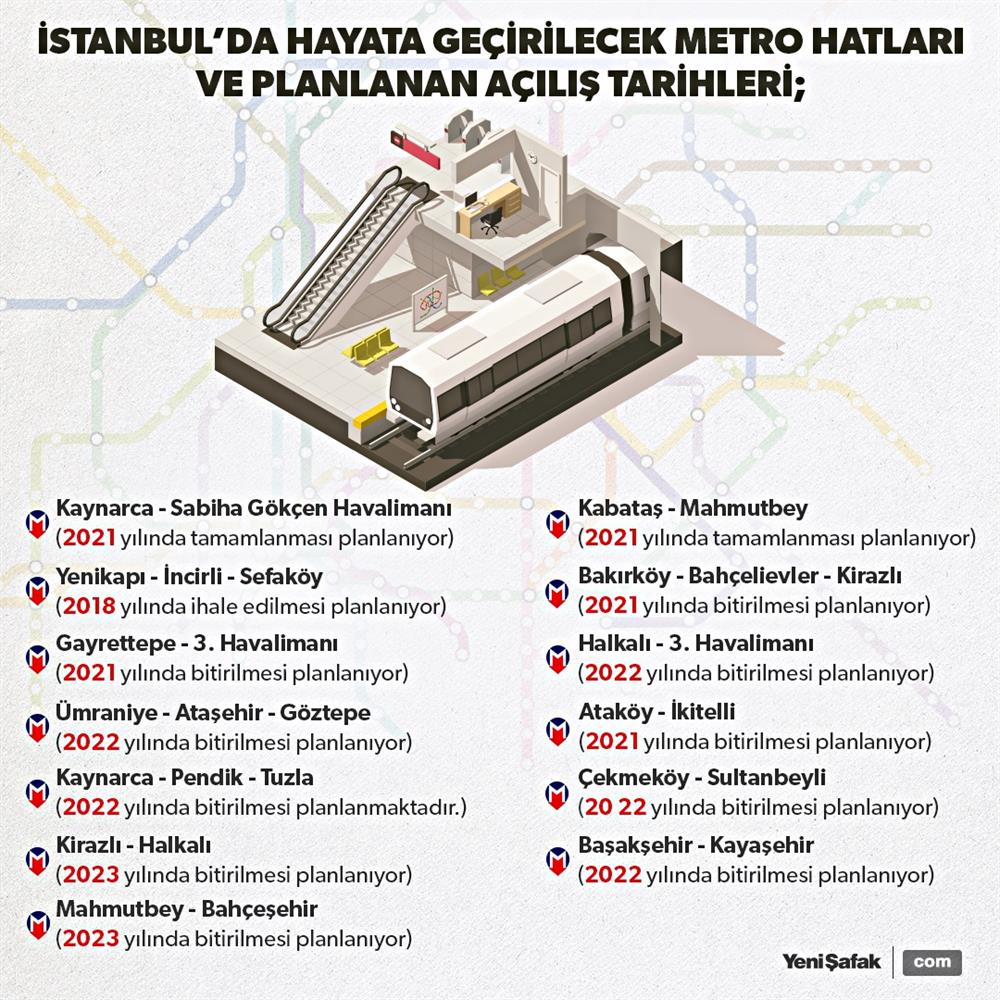 2018 yılı sonuna kadar çalışmaları devam eden 5 hattın açılması planlanırken çalışması veya planlaması devam eden 13 hat için ise öngörülen takvim 2023 yılı olarak hedefleniyor. Yeni modelin hızlandıracağı süreç sonunda İstanbul genelinde 21 metro hattı hizmet verecek ve İstanbul’un her bölgesine hemen hemen metro gitmiş olacak.