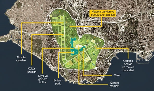 İstanbul Atatürk Havalimanı arazisine yapılacak ‘Millet Bahçesi’nin kalbinde çevresi ağaçlandırılmış olan büyük bir gölet olacak. Pistler yürüyüş yolu olarak korunurken temalı parklar, oyun ve aktivite alanları yer alacak.