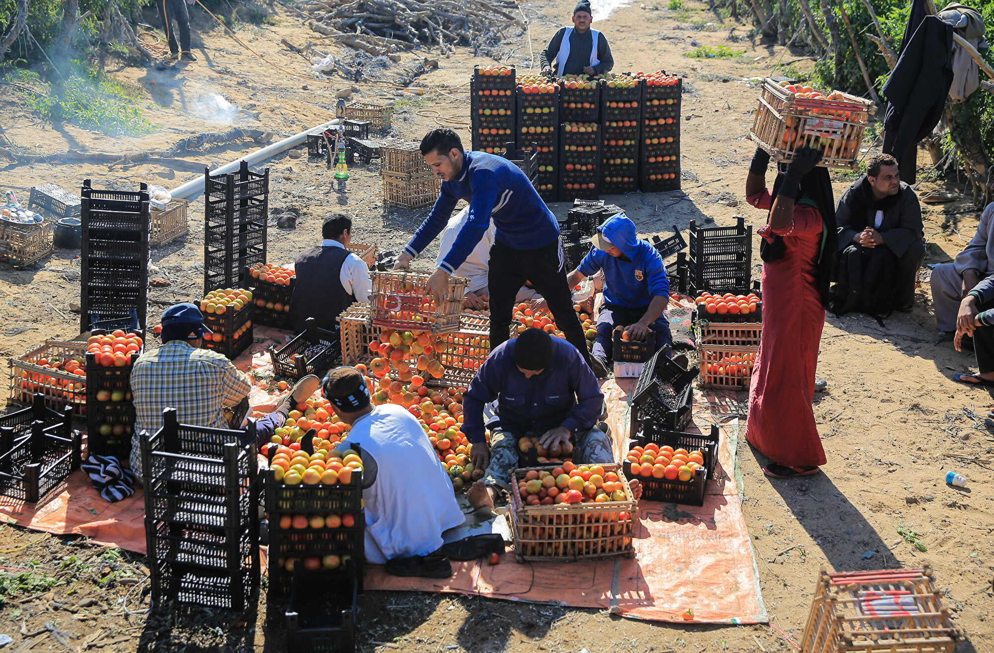 Başkent Kahire'nin güneybatısında bulunan El-Feyyum ilinde, sırık domatesi hasadı için hummalı bir çalışma yürütülüyor.