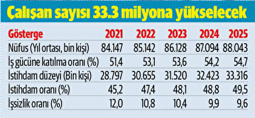 Buna göre, nitelikli iş gücünün geliştirilmesi amacıyla bölgesel ve sektör odaklı eğitim ihtiyaç analizleri yapılarak, mesleki eğitim programlarının dijital ve yeşil dönüşümün gereklerine cevap verecek şekilde güncellenmesi öngörülüyor. Bu kapsamda; tarım, savunma sanayisi, yapay zeka, siber güvenlik, temiz ve sürdürülebilir enerji, havacılık ve uzay teknolojileri alanlarında nitelikli iş gücü yetiştirmeye yönelik sektörle iş birliği çalışmaları gerçekleştirilecek. Eğitimde ve istihdamda olmayan gençlerin iş gücüne katılımını artırmaya yönelik uygulamalar hayata geçirilecek. Dijital dönüşüm, teknolojik gelişmeler ve salgın sürecinin iş mevzuatında ortaya çıkardığı ihtiyaçlara yönelik düzenlemeler yapılacak.