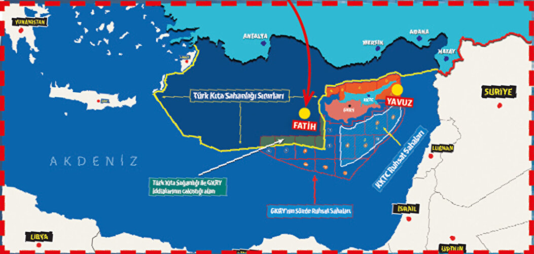 KKTC tarafından Türkiye Petrolleri'ne (TP) devredilen sahalarda süren sondajlarda sonuç alınıyor. Bir süredir Kıbrıs batısındaki Baf açıklarında doğalgaz-petrol arayan sondaj gemisi Fatih'in, piyasa değeri 40 milyar dolara ulaşan 170 milyar metreküplük doğalgaz bulduğu iddia edildi. Türkiye'nin ikinci sondaj gemisi Yavuz ise Kıbrıs doğusundaki aramalarını Karpaz açıklarında sürdürüyor. Rusya'dan alınan S-400 bataryasının Doğu Akdeniz hava sahasını kapatacağından endişelenen Yunan basını ise "Fatih'in son gaz keşfinin Rum Kesimi'nde alarma neden olduğu" yönünde haberler yayınlıyor. Derin denizdeki gelişmelerin Yunan basını tarafından Avrupa Birliği dişişleri bakanları toplantısından önce duyurulması, Avrupa'nın panik halinde bir dizi yaptırım kararı almasına yol açtı.