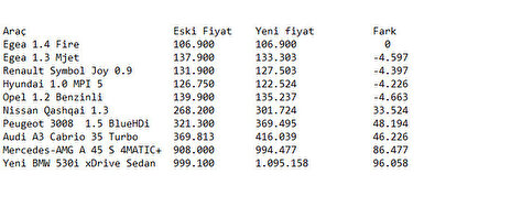 ÖTV ZAMMI İLE YENİ ARAÇLARIN FİYATLARI