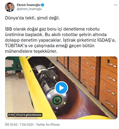 TÜBİTAK RUTE Müdürü Mehmet Ali Çimen, proje fikrinin 2017'de İGDAŞ tarafından kendilerine getirildiğini belirtti. Çimen, Robot Göz'ün, İGDAŞ'ın 12 ve 16 inçlik 545 kilometre uzunluğundaki hattında denetim yapacağını söyledi.