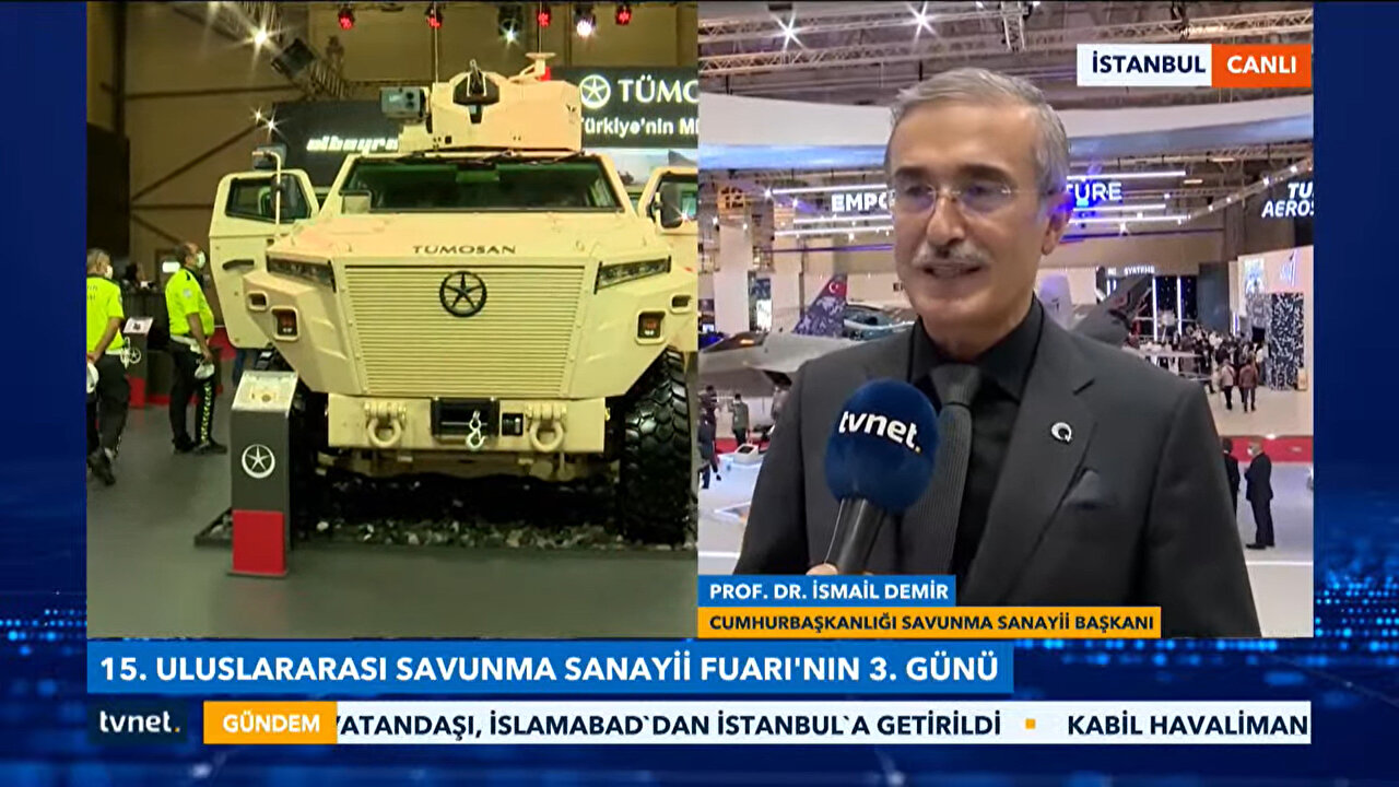 Türk savunma sanayiinin gövde gösterisine dönüşen 15. Uluslararası Savunma Sanayii Fuarı'nda, Cumhurbaşkanlığı Savunma Sanayii Başkanı İsmail Demir TVNET’e özel açıklamalarda bulundu.