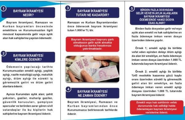 Broşürde, bayram ikramiyesinden kimlere ödendiği ve hangi oranlarda yapıldığına yönelik bilgiler yer aldı.
