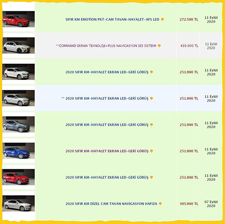 - Sosyal medya üzerinden paylaşılan görsellerde online ilan siteleri üzerinden satışa çıkarılan araçların 2020 Eylül ayı çıkışlı olduğu da iddia edildi.
