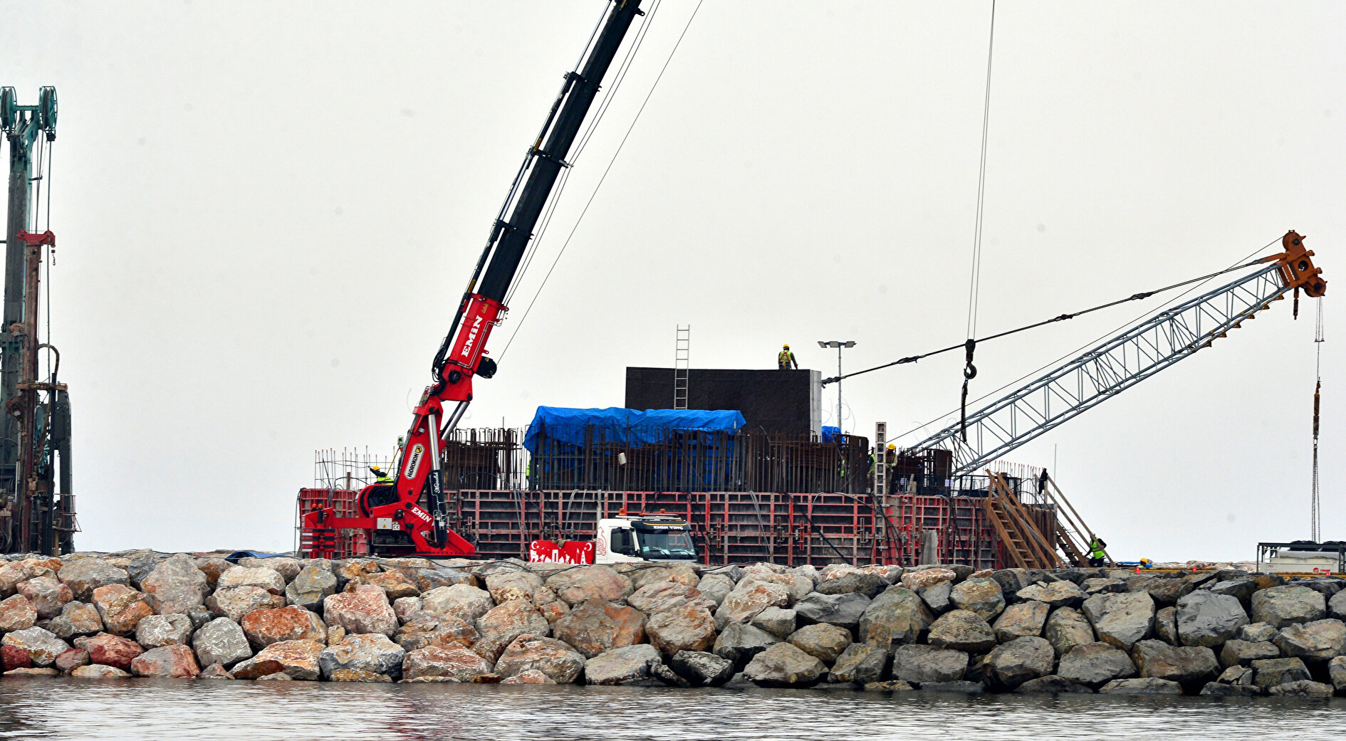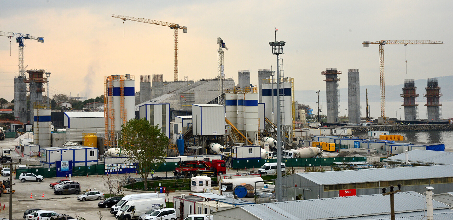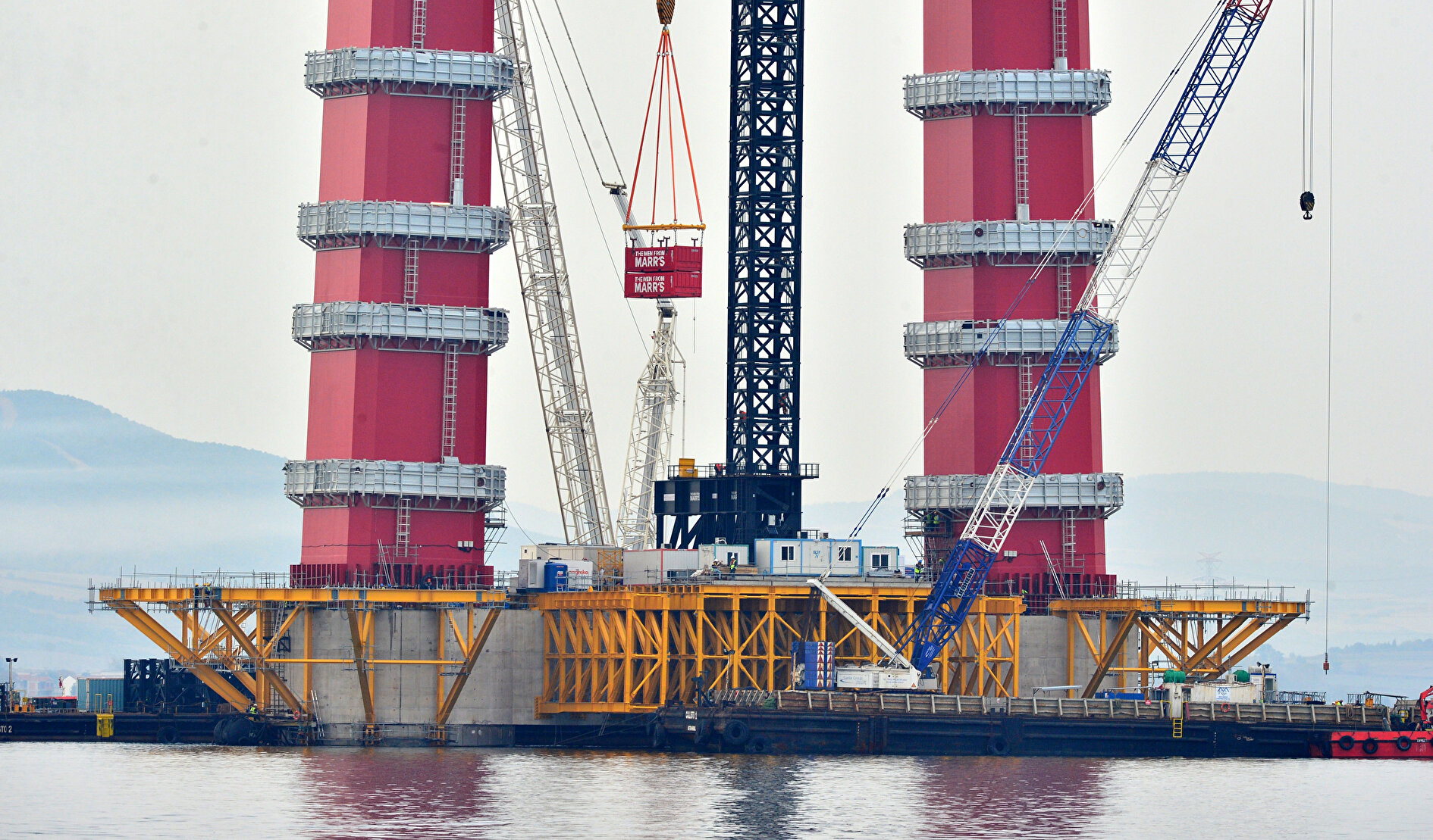 Deniz içi çalışmalarının ardından başlatılan su üstü çalışmalarında da büyük aşama kaydedildi. Sütlüce ve Şekerkaya şantiyelerinde, köprü ayaklarına vinç yardımıyla bağ kirişi montajlarının yapılmasının ardından kule blokları üst üste konuluyor. Deniz içindeki blokların yerleştirilmesiyle köprünün ayakları yükseliyor.