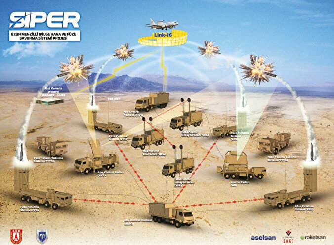 - SİPER Uzun Menzilli Bölge Hava ve Füze Savunma Sistemi stratejik tesislerin düşman taarruzlarına karşı uzun menzilde hava savunmasını sağlamakta olup, dağıtık mimariye, yakın ve uzak konuşlanma yeteneklerine, çoklu angajman ve ardışık ateşleme, zorlu hava koşullarında görev yapabilme, kara, hava, deniz ve demiryolu ile taşınma, çoklu taktik veri link ile üst komuta kontrol entegrasyonu, Radar Ağı Yönetim Sistemi (RADNET) ve Hava Kuvvetleri Bilgi Sistemi (HvBS) ile bağlantı yeteneğine sahiptir.
