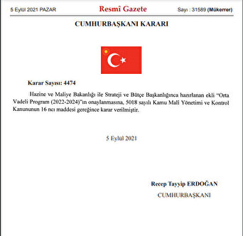 Türkiye ekonomisinin 2022-2024 dönemini kapsayan Orta Vadeli Program Resmi Gazete'de yayımlandı. Programda 2022 yılına ilişkin büyüme yüzde 5 olarak belirlenirken, 2023 ve 2024 için de yüzde 5,5'lik büyüme hedefi konuldu.