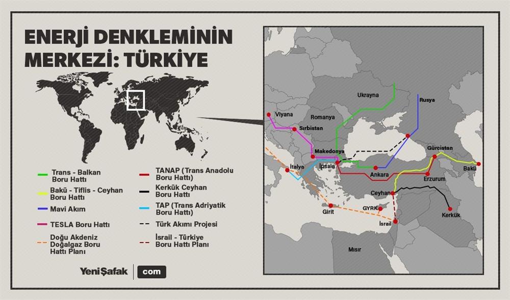Türkiye enerji politikalarıyla küresel ve bölgesel arenada elini güçlendirmeye devam diyor. Enerjideki son hamleler Türkiye'yi enerji alanında merkez ülke konumuna taşıyacak. Bu projelerden en dikkat çekeni ise Trans Anadolu Doğalgaz Boru Hattı (TANAP) projesi. 2018 yılında Türkiye’ye gaz sevkiyatına başlanacak projede 2020 yılında Avrupa’nın gaz vanası da Türkiye’nin kontrolüne geçecek.