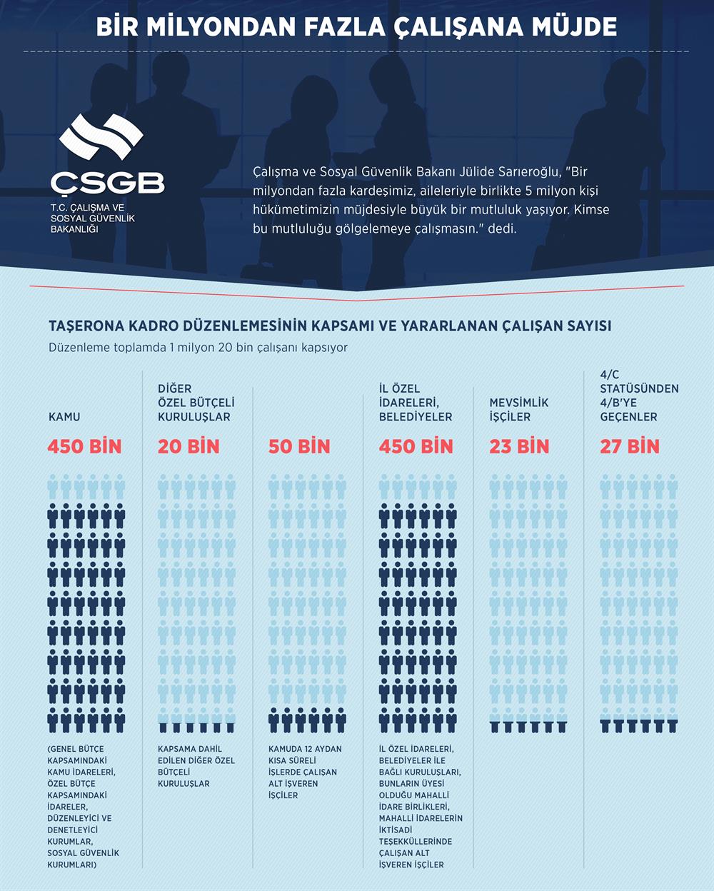 Sayıları 1 milyon 20 bin olan taşeron işçilerin kamuda kadroya alınmasıyla, Türkiye’de iş yapma sisteminde köklü değişiklikler yaşanacak.